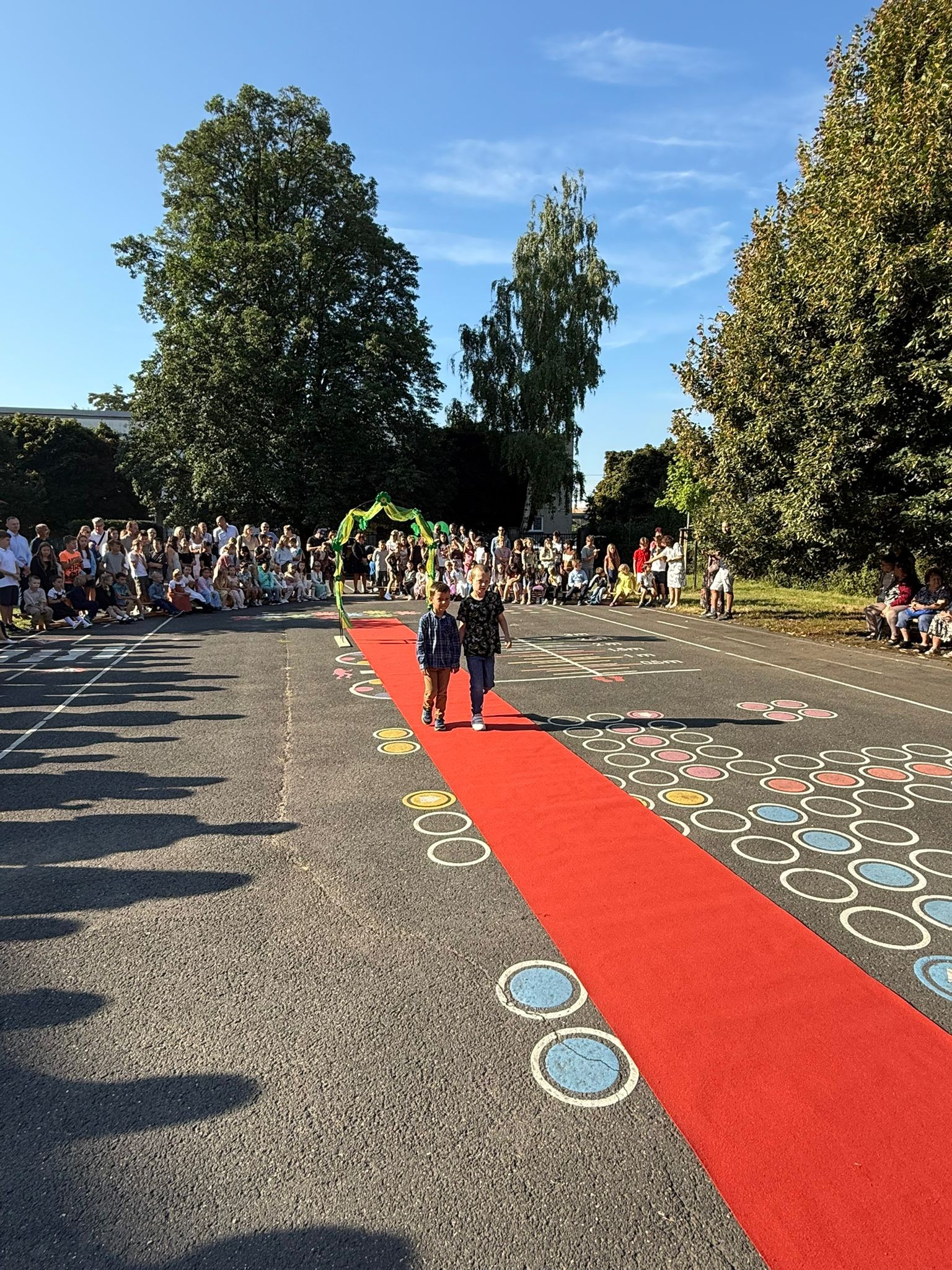 V pondělí 1. září tradičně na hřišti školy proběhlo slavnostní přivítání prvňáčků.  Letošní novinkou byl červený koberec, na kterém se každý prvňáček prošel se svým patronem z řad našich páťáků. Za zřizovatele – Město Lovosice -naše nejmenší přivítal pan starosta Ing. Vojtěch Krejčí. Počasí nám přálo, atmosféra byla příjemná a tak si prvňáčci i jejich rodiče tento den užili.