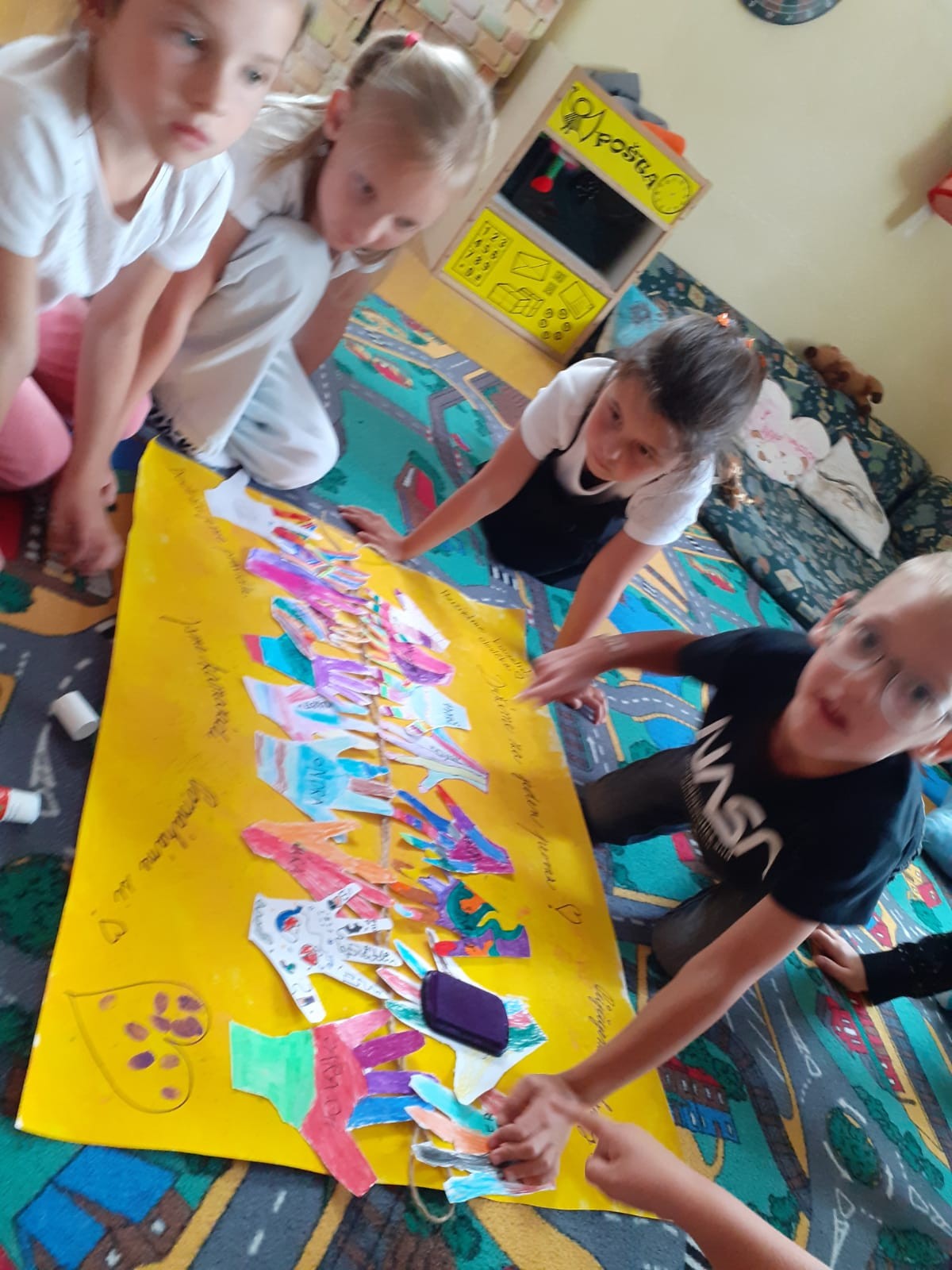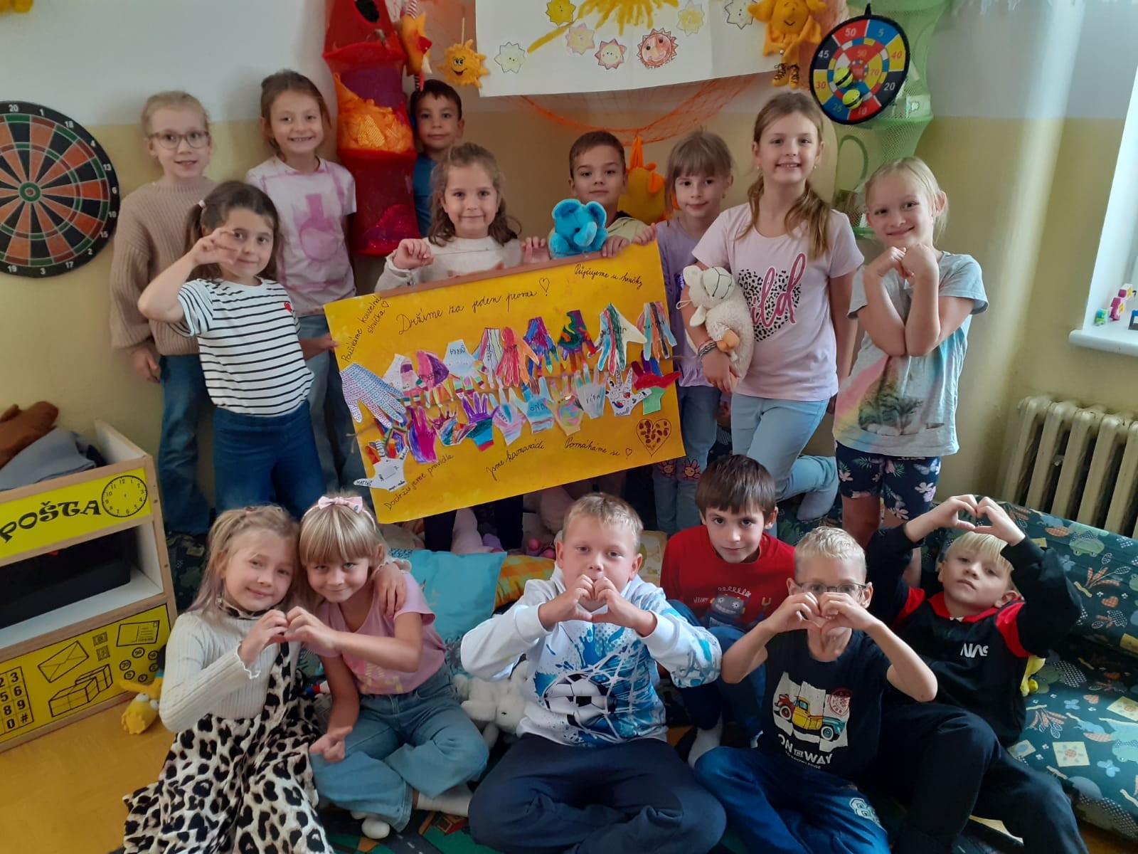 Děti z družinky Sluníček si vytvořily svá pravidla “Držíme za jeden provaz” a také se naučily píseň “Naše drůža”. Jsou to velké šikulky.