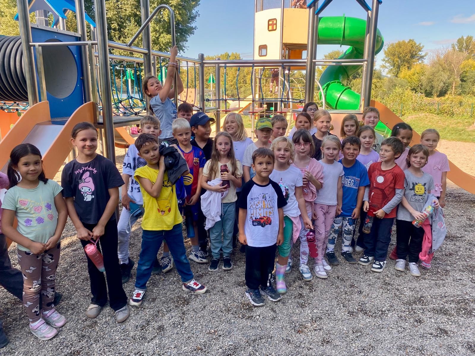 Děti z družinky Sluníček a Soviček si také  užívali vycházku s dopravní tématikou. Skládaly dopravní prostředky, plnily úkoly zadávané zvonečkem a hrály si na hřišti. Všichni si slunečný den skvěle užívali.