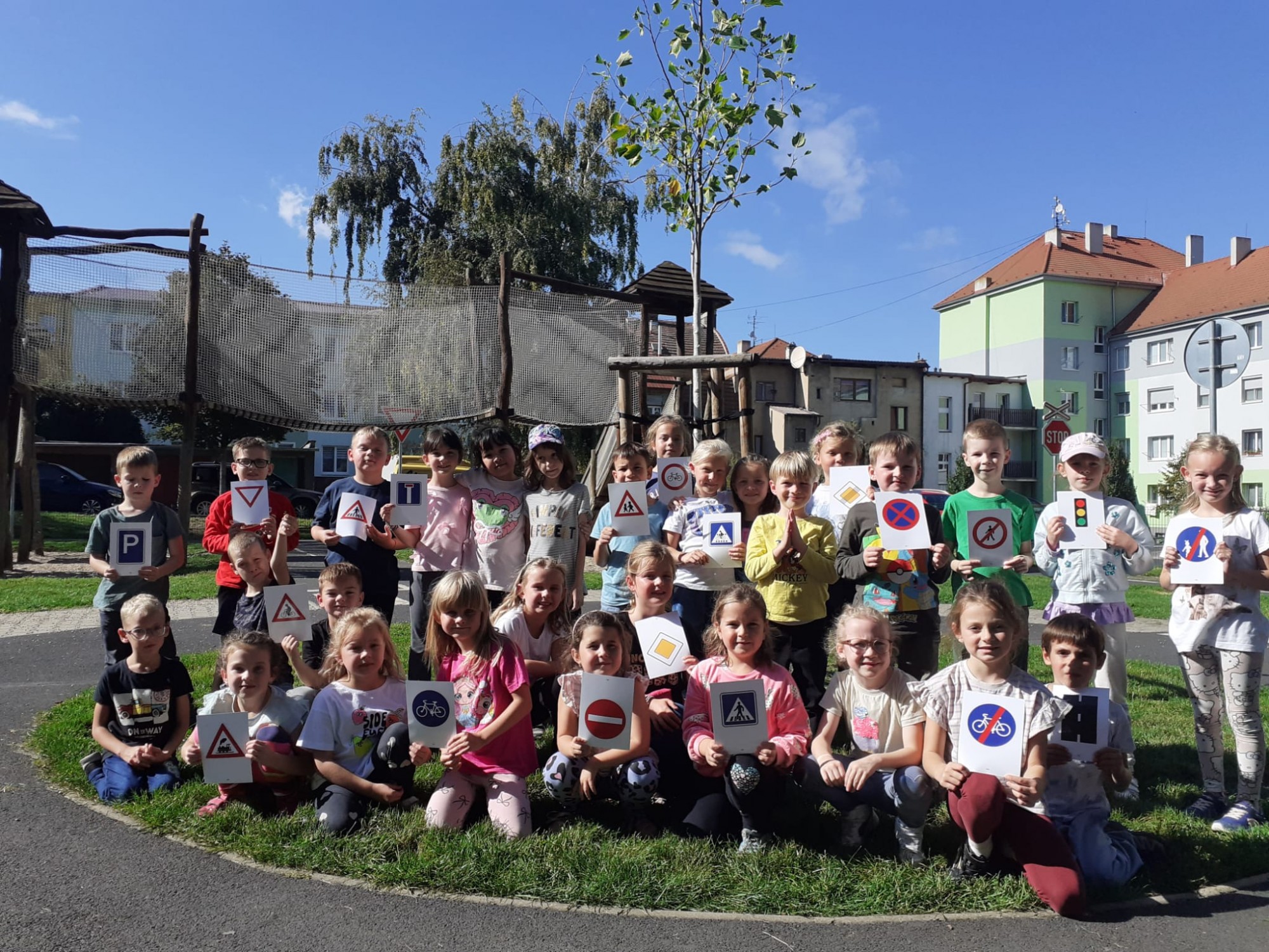 Oddělení Berušek a Kouzelníků se ve čtvrtek vydala na vycházku městem, kde děti poznávaly dopravní značky. Zbytek vycházky si zpříjemnily na dětském hřišti.