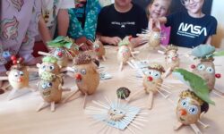 Tento týden se v naší družině pracovalo s bramborou. Děti z družinky Sluníček se naučily básničku “Koulela se brambora”, udělaly si razítka a malovaly podzimní strom a na závěr z brambory vykouzlily pana Bramboru a sluníčko. Všem se práce líbila a na závěr i vydařila.